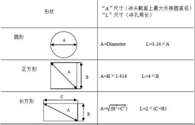 沖壓力(KN)=沖壓孔的周長(L)×材料厚度(T) ×0.345×材料因數(F) ×剪切因數(S) 計算單位為mm,材料因數(F)的選擇(見下表)